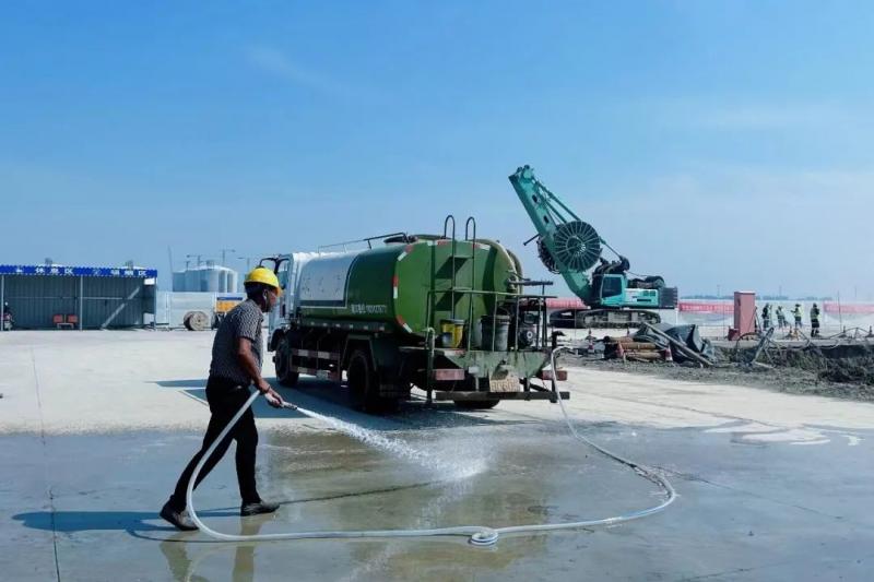 一是提高環(huán)境整潔度。在施工期間,對施工現(xiàn)場主要通道、道路進(jìn)出口、材料加工區(qū)、生活辦公區(qū)進(jìn)行硬化處理。安排灑水車輛定時傾灑施工便道,確保道路干凈無淤泥、無浮土、無積水。做好圍擋全封閉、土方挖運作業(yè)降塵、渣土車輛密閉運輸、裸露地面全覆蓋等工作,將揚塵管控作為日常工作常抓不懈。