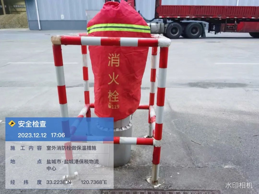 保稅物流中心堅(jiān)持“抓早、抓緊、抓實(shí)、抓細(xì)”的原則對(duì)公司區(qū)域內(nèi)消防管網(wǎng)開展冬季防凍維保工作。主要是對(duì)庫(kù)區(qū)室外消火栓、消防管網(wǎng)加裝防凍保溫措施,防止消防管道因極寒天氣發(fā)生冰凍、破裂,并進(jìn)一步強(qiáng)化消防系統(tǒng)巡查,切實(shí)做到每臺(tái)設(shè)備有人管,每條管線有人查,確保各消防設(shè)備安全平穩(wěn)過冬。