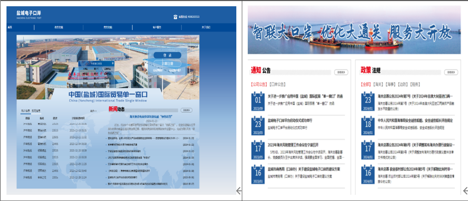隨著鹽城港“一港四區(qū)”全開放,為了更好地促進經濟發(fā)展、優(yōu)化企業(yè)營商環(huán)境,根據市政府關于推進我市電子口岸建設的要求,建設鹽城電子口岸平臺,為政府提供數據共享、風險管理、數據分析等服務,為聯檢單位提供AR眼鏡智慧查驗、報港一鍵申報、入境一鍵接入等服務,為企業(yè)提供貨物報關、船舶動態(tài)申報、集裝箱箱單打印、貨物信息實時查詢、商品品名校驗、自動申報等十大服務。總體實現政府服務、口岸監(jiān)管、企業(yè)申報等協(xié)同作業(yè)、信息互聯、數據共享,提高政府決策、口岸監(jiān)管、企業(yè)通關、物流服務的智能化、智慧化、便利化水平。截至目前鹽城電子口岸平臺全年累計收錄報關單已經破萬,全年累計收錄報關單總貨值達500多億元。