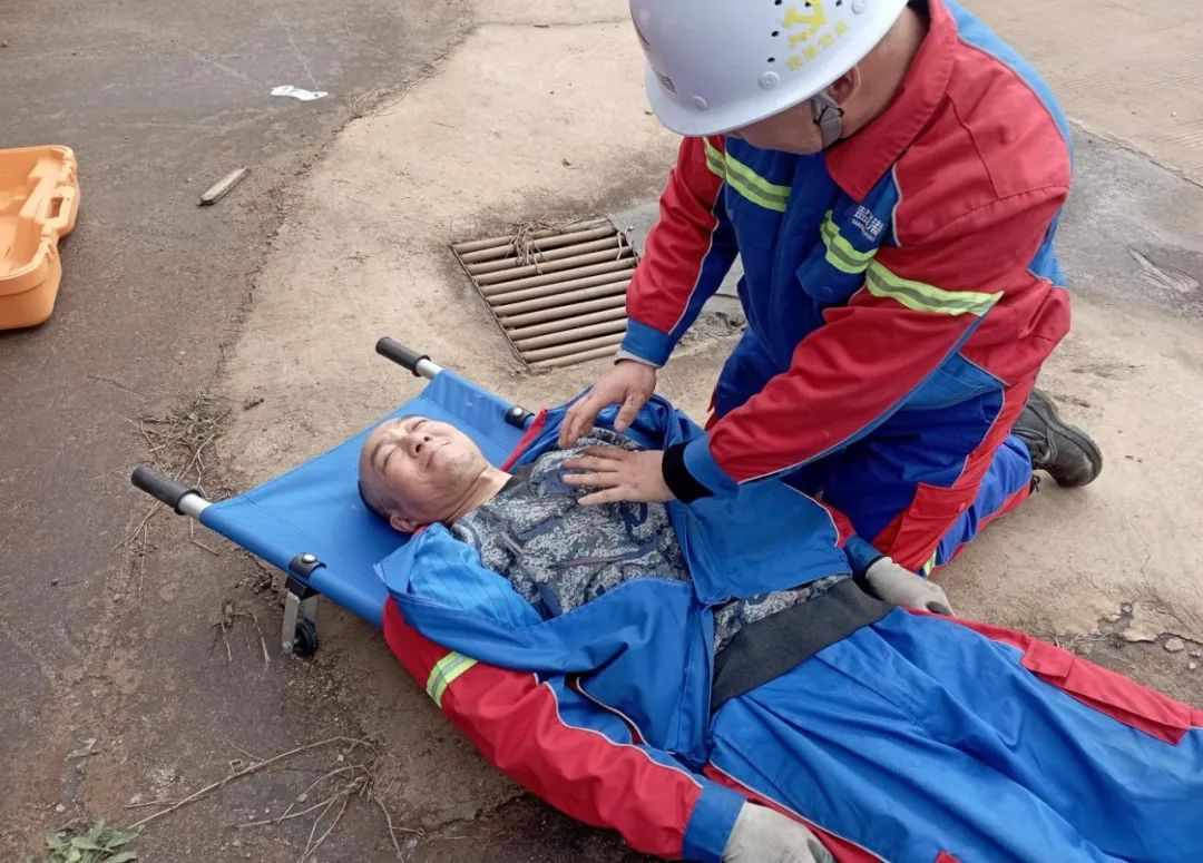 通訊警戒組在安全區(qū)域拉起警戒線,救援組迅速穿戴防護用品,緊急切斷TK102閥門。