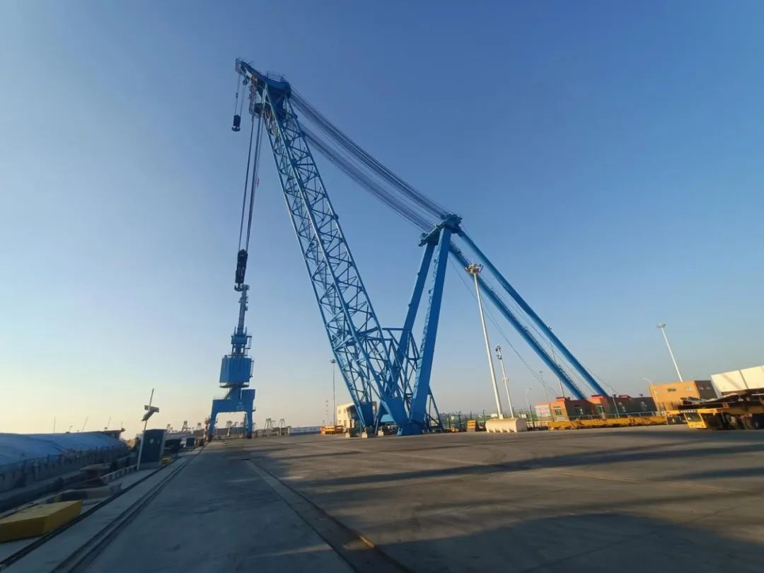 桅桿式起重機(jī)(俗稱桅桿吊),桅桿吊是一種能吊裝其他起重機(jī)械難以吊裝的特殊構(gòu)筑物和重大結(jié)構(gòu)的起重機(jī),鹽城港桅桿吊主要從事風(fēng)電相關(guān)的塔筒及風(fēng)葉等大型配件其他相關(guān)大型設(shè)備的吊裝,目前響水、大豐、射陽(yáng)均有相應(yīng)的起重設(shè)備,其中響水重件碼頭桅桿吊起重負(fù)荷可高達(dá)1250噸,為華東地區(qū)最大負(fù)荷的港口起重設(shè)備。
