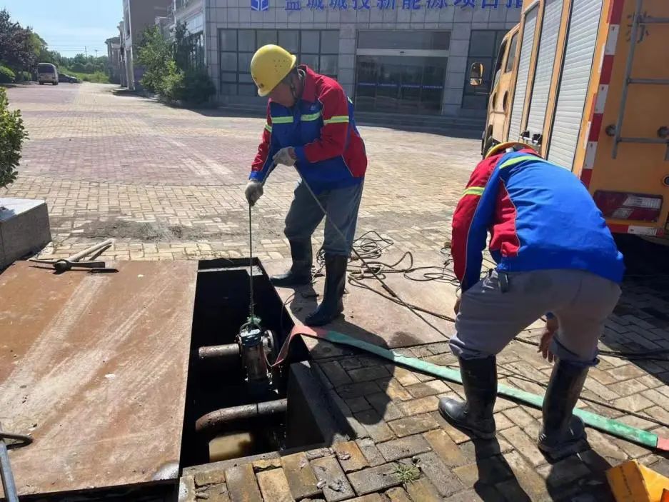 (表井內(nèi)有水,為清楚抄表,抄表員正在抽水中)
