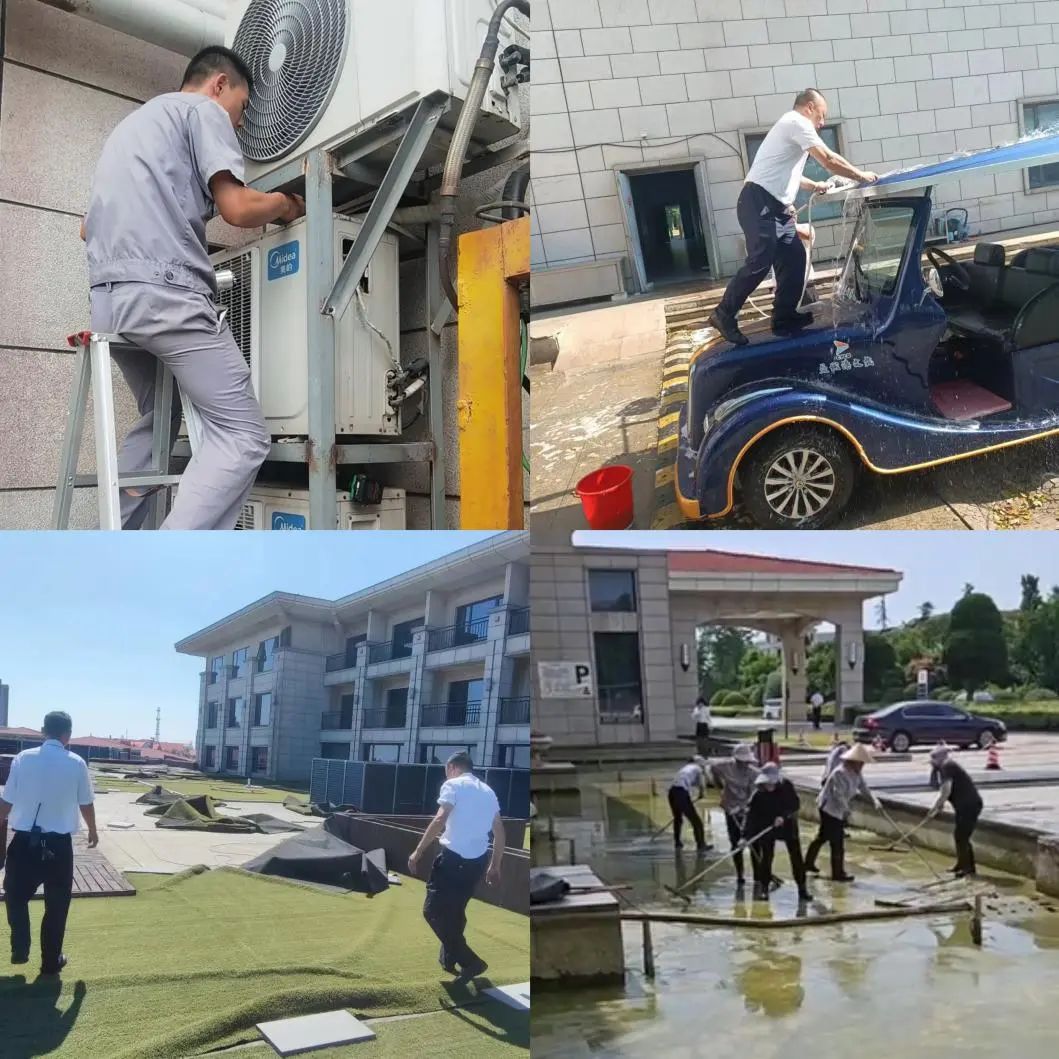 高溫擊不垮鹽城港人對事業(yè)的熱愛、對崗位的忠誠。頂著烈日的忙碌身影,鋪被風(fēng)吹散的草坪、清理遍布綠色苔蘚的水池、清洗觀光車、維修設(shè)備.....,他們用強烈的責(zé)任心與可靠的專業(yè)技能,讓客戶用得放心。