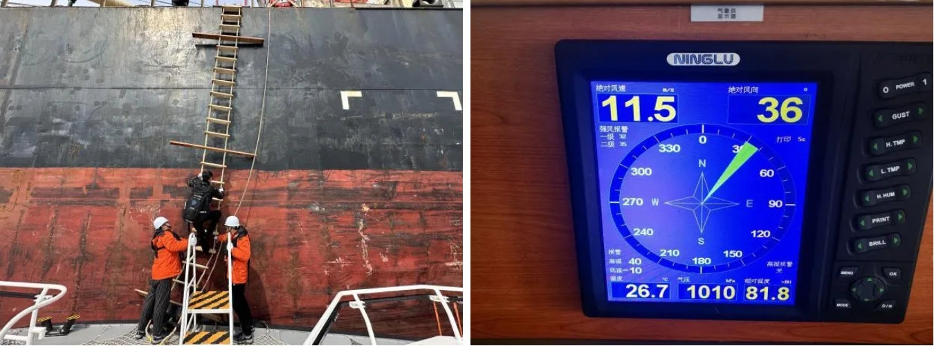 在陣風(fēng)7級(jí)的影響下,引航員艱難地攀爬引航梯登上了引航船舶,通過(guò)對(duì)現(xiàn)場(chǎng)水文天氣環(huán)境的觀察,結(jié)合自身經(jīng)驗(yàn),抓住陣風(fēng)窗口期,開(kāi)啟船用雷達(dá),實(shí)時(shí)監(jiān)測(cè)航道有無(wú)礙航物及過(guò)往船只,并要求船方備妥雙錨和主機(jī),以應(yīng)對(duì)潛在安全風(fēng)險(xiǎn),引航員不斷在船舷和駕駛室內(nèi)來(lái)回跑動(dòng)觀察,加強(qiáng)瞭望,及時(shí)利用高頻與海事部門、拖輪以及碼頭人員進(jìn)行溝通聯(lián)系,安全地完成了本次引航靠泊任務(wù)。