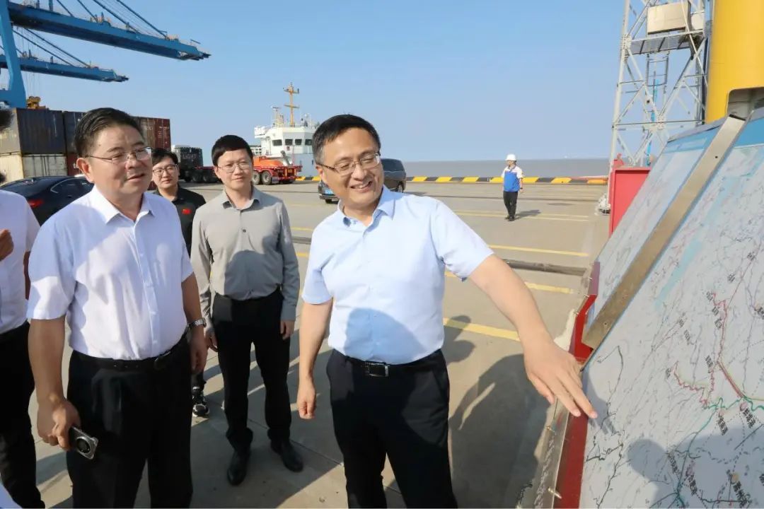 趙守才一行先后來到自動化集裝箱堆場、大豐港區(qū)集裝箱碼頭、通用碼頭等地實(shí)地調(diào)研,詳細(xì)了解港區(qū)生產(chǎn)經(jīng)營、發(fā)展規(guī)劃及運(yùn)營管理等情況。