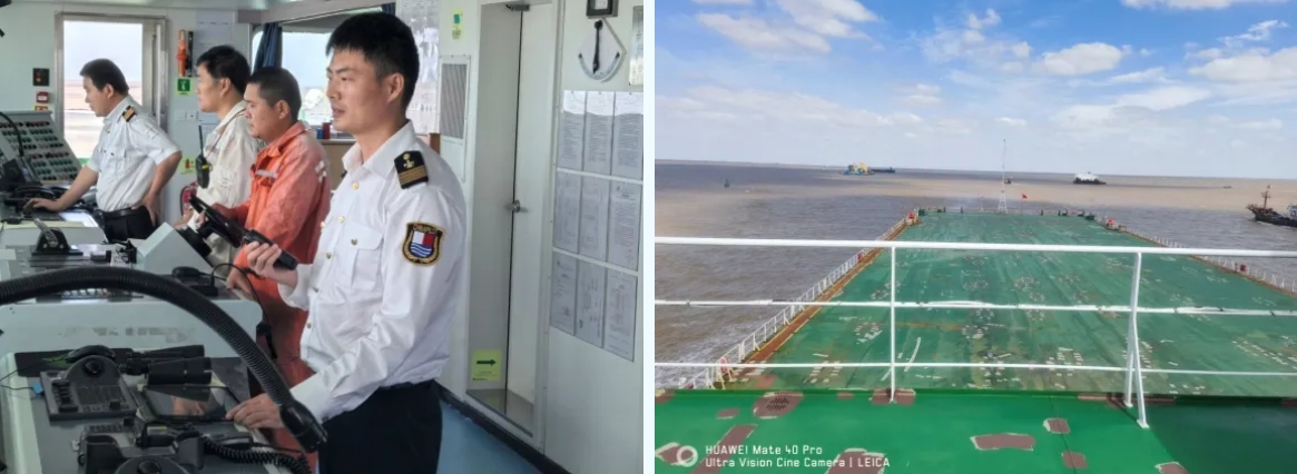 下午1點(diǎn)30分,3名引航員登上“恒遠(yuǎn)發(fā)展”輪,開始引航作業(yè)。在引航過程中,引航員們發(fā)現(xiàn)不僅僅要面對當(dāng)天的潮流影響,航道內(nèi)密集的進(jìn)出港漁船交通流以及航道口門處錨泊的疏浚船、電纜船等復(fù)雜局面都對引航作業(yè)產(chǎn)生了極大的干擾性。對此引航員們分頭行動,沉著應(yīng)對,一人觀測潮流、風(fēng)向,一人密切關(guān)注其他船舶動向,一人與船長緊密交流,對船舶進(jìn)行精細(xì)的航線調(diào)整,確保了“恒遠(yuǎn)發(fā)展”輪在復(fù)雜水域中的航行安全。下午3點(diǎn),該輪順利靠泊射陽港通用碼頭。