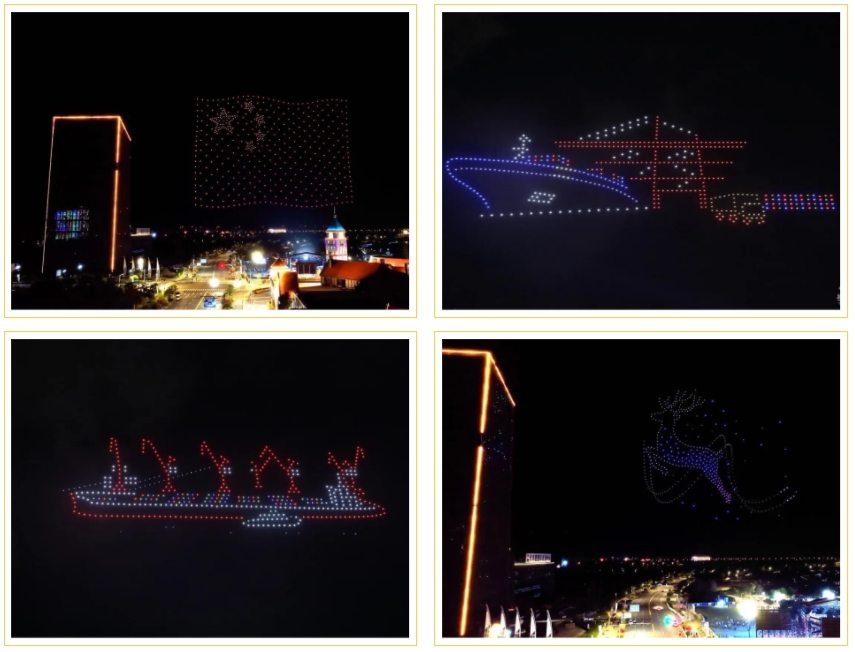 夜幕徐徐降臨,500架無人機同時升空,一場主題慶祝新中國成立75周年的無人機燈光秀正式開演。借用科技編程語言,敘述著鹽城從過去到未來的輝煌巨變,時而變化成濕地精靈,時而演變成現(xiàn)代大港,時而匯聚成鮮艷的五星紅旗,這不僅是一場視覺的盛宴,更是對新中國成立75周年的深情祝福。精彩的表演引得來自周邊的游客情不自禁地拿起相機,定格眼前的美好。