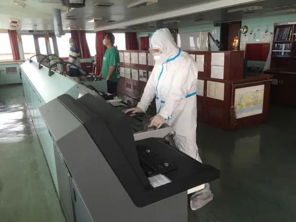 2020年大豐港掛靠的第一條出現(xiàn)確診病例的(大洋洲)“OCEANIAGRAECA”輪,在該輪進(jìn)港之前,整個(gè)大豐區(qū)均進(jìn)入“防疫應(yīng)急程序”;根據(jù)區(qū)政府的防疫部署,我站在會(huì)商、組織該輪的引航時(shí),張曉東同志建言獻(xiàn)策,而且主動(dòng)“請(qǐng)戰(zhàn)”,請(qǐng)求引領(lǐng)該輪。在執(zhí)行該輪引航作業(yè)時(shí),按事先定好的引航方案,他只能站在駕駛臺(tái)外側(cè)實(shí)施引航,夏天高溫又時(shí)值中午,船上甲板溫度高達(dá)五、六十度,防護(hù)服內(nèi)衣服全部濕透,防護(hù)眼鏡起霧嚴(yán)重,戴著塑膠手套引航設(shè)備操作不靈敏,給引航工作帶來(lái)諸多不便,更給引航員身體和心理帶來(lái)很大壓力。尤其是在靠泊過(guò)程中,只能憑借經(jīng)驗(yàn)來(lái)感知船舶運(yùn)動(dòng)的各要素。該輪引航時(shí)間長(zhǎng)達(dá)4個(gè)小時(shí),經(jīng)過(guò)努力,克服一切不利因素,最終把該輪安全靠上碼頭。