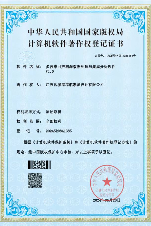勘測設計公司積極推進創(chuàng)新創(chuàng)效工作,結合業(yè)務實際情況進行技術創(chuàng)新和課題研究。2024年公司取得軟件著作專利3件(《多波束回聲測深數據處理與集成分析軟件V1.0》《水環(huán)境智能分析系統(tǒng)V1.0》《遙感數據自動化處理平臺V1.0》),有力提升了公司測繪知識產權軟件產品的權威性和專業(yè)化測繪技術的競爭力;開展《鹽城港四港區(qū)理論最低潮面推算》自主課題研究,課題成果將在提升航行安全、優(yōu)化航道利用、提高工程決策準確性等多方面帶來經濟效益。