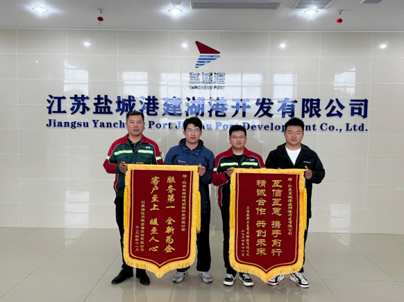 堅(jiān)守責(zé)任之心,勇?lián)姑巍=?,鹽城港建湖港區(qū)收到江蘇錦達(dá)保稅倉儲(chǔ)股份有限公司及上海英斯貝克商品檢驗(yàn)有限公司贈(zèng)送的“服務(wù)第一 全心為企”與“互信互惠 攜手前行”榮譽(yù)錦旗,對(duì)鹽城港建湖港區(qū)在2024年度在鉻鐵運(yùn)輸業(yè)務(wù)中提供的優(yōu)質(zhì)服務(wù)表示高度認(rèn)可和支持。