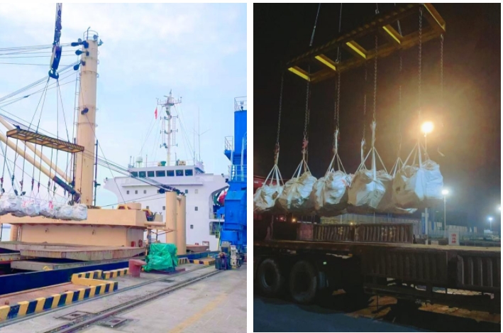 ??吭?#泊位的“臺松3”輪,有4個船艙,貨物共有12票貨,船艙內分票雜亂無章且存在破包現(xiàn)象。為順利完成首次外貿噸袋+框架吊作業(yè),響水港務生產團隊提前研究、提前部署,制定嚴格緊密的裝卸方案。同時為了高效完成此次任務,按照堆場卸貨要求提前采購框架吊工具,在保障安全的前提下,力爭最快速度完成外貿噸袋+框架吊作業(yè)。在生產團隊齊力配合下卸貨作業(yè)按照既定計劃穩(wěn)步開展,堆場采取正面吊+框架吊具方式進行卸包作業(yè),實現(xiàn)單鉤操作件貨10包,較傳統(tǒng)叉車、吊車,作業(yè)效率提升400%。