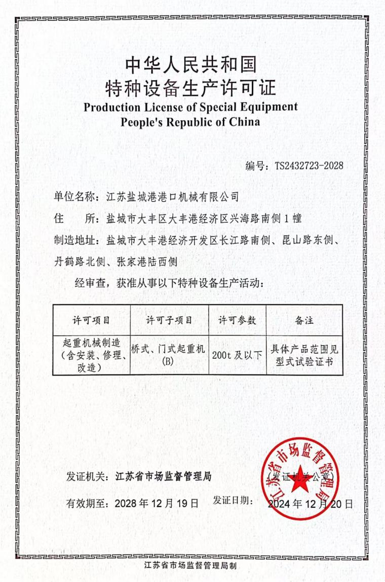 下一步,港機公司將充分發(fā)揮橋式、門式起重機(B級)特種設備生產許可證的優(yōu)勢,不斷提升企業(yè)的核心競爭力,為港口及相關行業(yè)的發(fā)展提供更加優(yōu)質的產品和服務,助力科技集團推動科技創(chuàng)新成果轉化實際應用,為鹽城港集團高質量發(fā)展做出更大的貢獻。