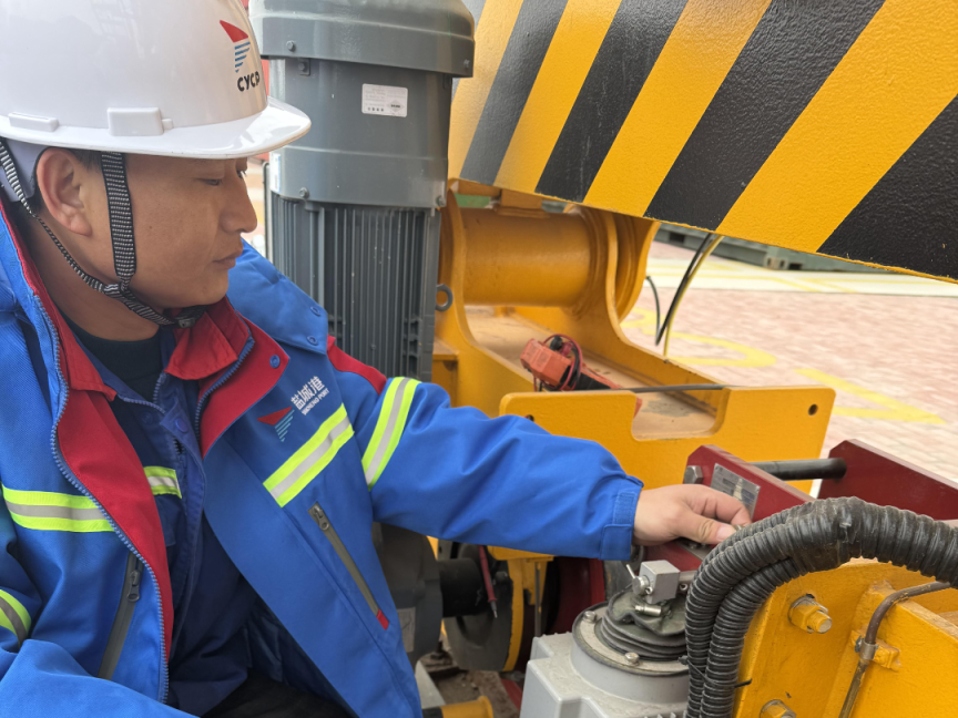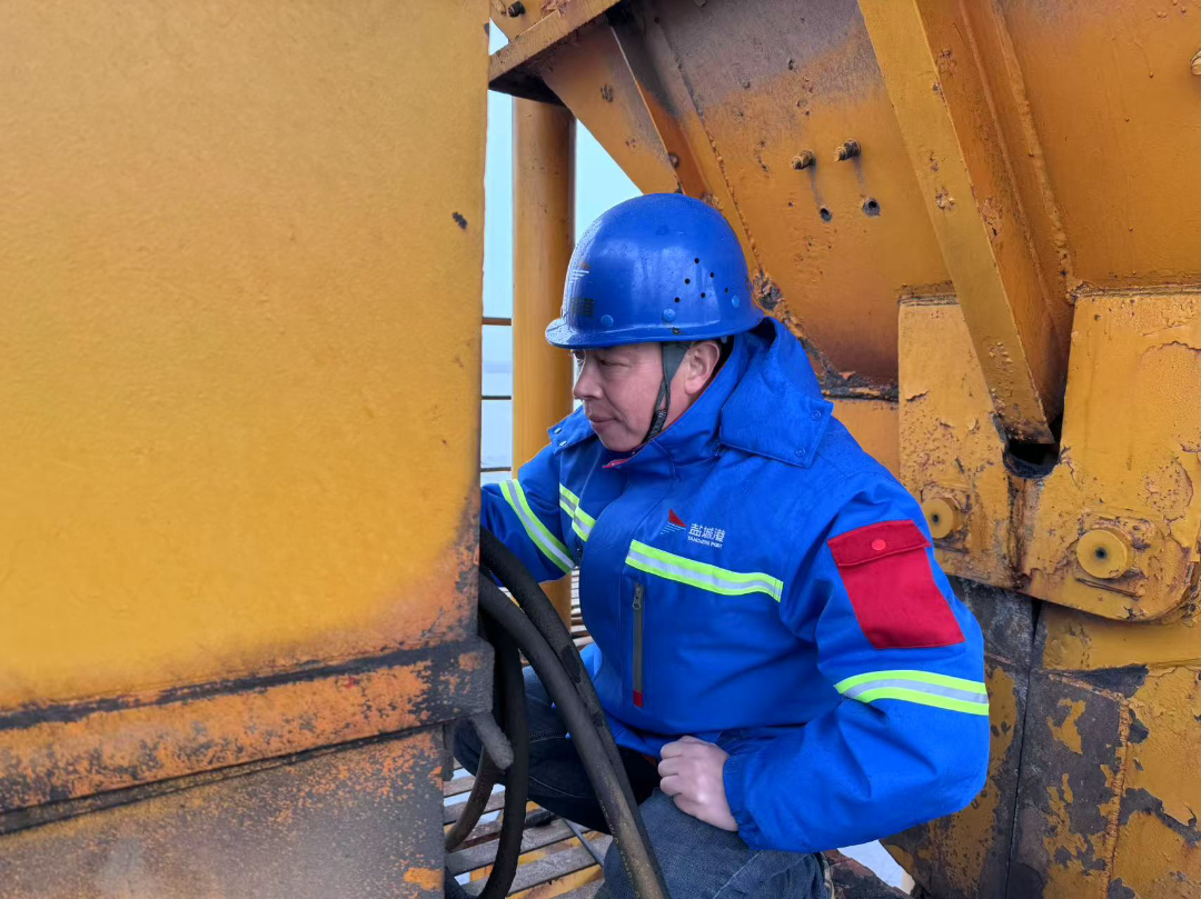 科技集團(tuán)港機(jī)公司的技術(shù)運(yùn)維部孫書(shū)林,舍小家為大家,寒風(fēng)雖冷,但心是熱的。他巧用扳手等工具,細(xì)心檢查大車(chē)行走限位,及時(shí)排除故障,用實(shí)際行動(dòng)默默守護(hù)節(jié)日期間的設(shè)備運(yùn)轉(zhuǎn),為港口運(yùn)營(yíng)增添動(dòng)能。