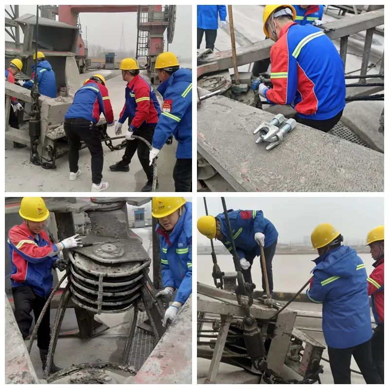 門機(jī)是港口裝卸作業(yè)的“主力軍”,而鋼絲繩作為關(guān)鍵部件,其安全性直接關(guān)聯(lián)作業(yè)效率。一季度,港區(qū)設(shè)備保障團(tuán)隊(duì)利用生產(chǎn)間隙,對港區(qū)1#門機(jī)的鋼絲繩開展更換。面對時(shí)間緊、任務(wù)重的挑戰(zhàn),團(tuán)隊(duì)創(chuàng)新采用“分段式拆裝+滑輪組輔助”工藝,成功將單臺設(shè)備更換時(shí)間壓縮20%,并同步完成潤滑保養(yǎng)和隱患排查工作。設(shè)備組組長邱師傅介紹:“我們提前模擬操作流程,細(xì)化每個(gè)環(huán)節(jié),抓住門機(jī)使用空檔期,確?!畵Q繩不停產(chǎn)’?!备鼡Q后,門機(jī)故障率下降20%,裝卸效率提升10%,為沖刺生產(chǎn)目標(biāo)提供了堅(jiān)實(shí)保障
