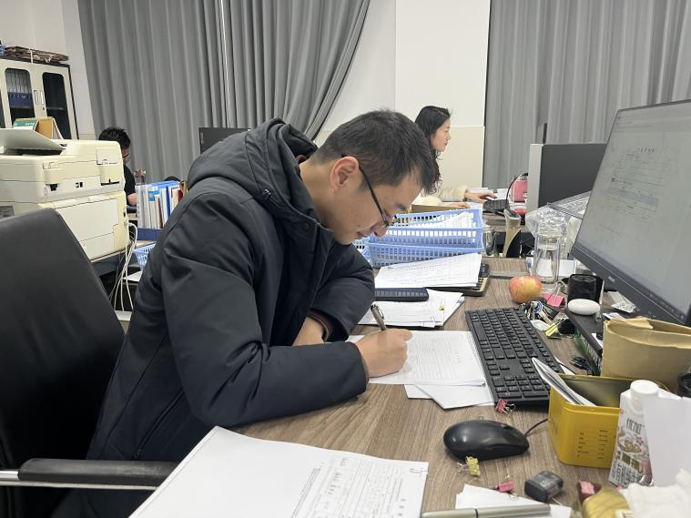 打電話、盯現(xiàn)場(chǎng)、整理檔案,每一次項(xiàng)目發(fā)起、每一個(gè)合同審批、每一個(gè)項(xiàng)目進(jìn)度審核,投發(fā)人以無(wú)數(shù)次的低頭測(cè)算,實(shí)現(xiàn)工程項(xiàng)目的序時(shí)推進(jìn)。