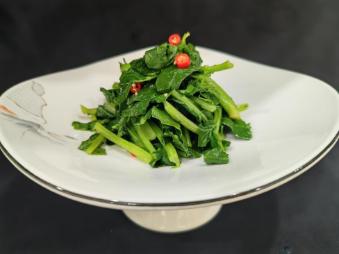 精選鮮嫩的板藍(lán)根苗作為主料,洗凈后沸水快速焯燙,恰到好處地保留了其脆嫩的口感與豐富營(yíng)養(yǎng)。隨后,以秘制醬汁調(diào)味,再撒上香氣四溢的蒜末、鮮紅的辣椒絲等佐料,淋上一勺滾燙的熱油,“刺啦” 一聲,春天的味道瞬間被激發(fā),脆嫩爽滑、開胃解膩。