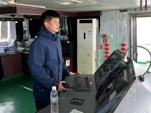 在“域?yàn)t3”號(hào)移泊任務(wù)中,一級(jí)引航員親自開展“現(xiàn)場(chǎng)教學(xué)”。有著多年經(jīng)驗(yàn)積累的“老師傅”,熟悉掌握大風(fēng)天氣后涌浪變化規(guī)律,他指導(dǎo)青年引航員,精準(zhǔn)控制入泊速度及角度。青年引航員在作業(yè)間隙抓住機(jī)會(huì)向師父?jìng)冋?qǐng)教,一級(jí)引航員們傾囊相授“急流區(qū)車舵配合”等獨(dú)門技法。