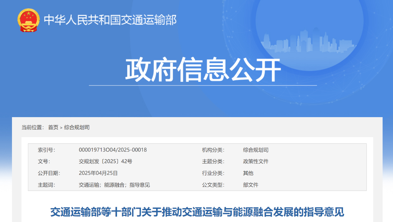 交通運(yùn)輸部等十部門關(guān)于推動(dòng)交通運(yùn)輸與能源融合發(fā)展的指導(dǎo)意見(jiàn)