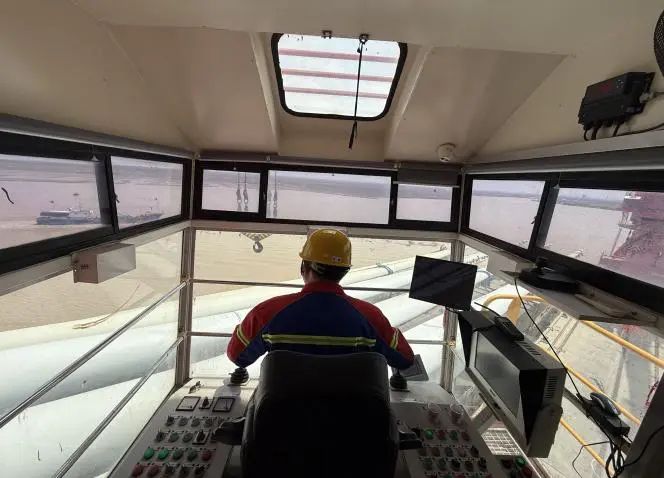 抓斗起落在數(shù)十米的高空中劃出流暢弧線,鋼齒咬合的瞬間,貨物簌簌滑落,門機(jī)室的玻璃接住了陽光拋來的金線,織進(jìn)了門機(jī)工的工裝里。他們心無旁騖,雙手穩(wěn)如磐石,憑借毫米級(jí)的操作精度,滿載時(shí)控制抓斗勻速下沉,避免貨物散落;空載時(shí)調(diào)整角度規(guī)避障礙物,確保設(shè)備與人員安全,全力提升港區(qū)貨物吞吐量,為港區(qū)完成年度目標(biāo)任務(wù)貢獻(xiàn)力量。