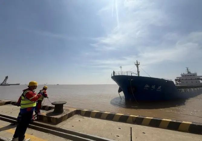 在射陽港區(qū)碼頭前沿,穿戴整齊調(diào)度員正和船長(zhǎng)、碼頭操作人員通過對(duì)講機(jī)保持密切溝通,根據(jù)實(shí)際情況發(fā)出靠泊指令,指揮船舶控制航速、調(diào)整船位,確保船舶平行、緩慢地靠近泊位。同時(shí)提醒碼頭操作人員準(zhǔn)備好纜繩、護(hù)舷等設(shè)備,完成系纜固定船舶工作。滿分穿搭為調(diào)度員的日常工作保駕護(hù)航,精準(zhǔn)調(diào)度為下一步的裝卸作業(yè)提供了堅(jiān)實(shí)的保障和高效的指引。