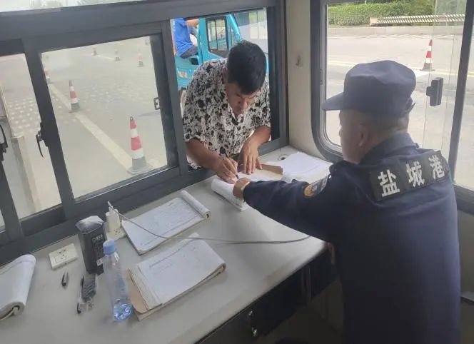 “你好,請(qǐng)將車停一下,登記進(jìn)港?!遍T崗保安員身子挺拔,手持醒目的紅色停車示意牌,維持港區(qū)入口處的進(jìn)出安全。他們目光堅(jiān)定,迅速核對(duì)駕駛員出示的證件與進(jìn)港通行證,指尖在登記簿上飛速記錄車牌、姓名、事由等信息,同時(shí)與職能部門實(shí)時(shí)核驗(yàn)身份。他們說,只要穿著保安服,我們就必須用嚴(yán)謹(jǐn)細(xì)致的工作狀態(tài),守牢港口的第一道安全防線。