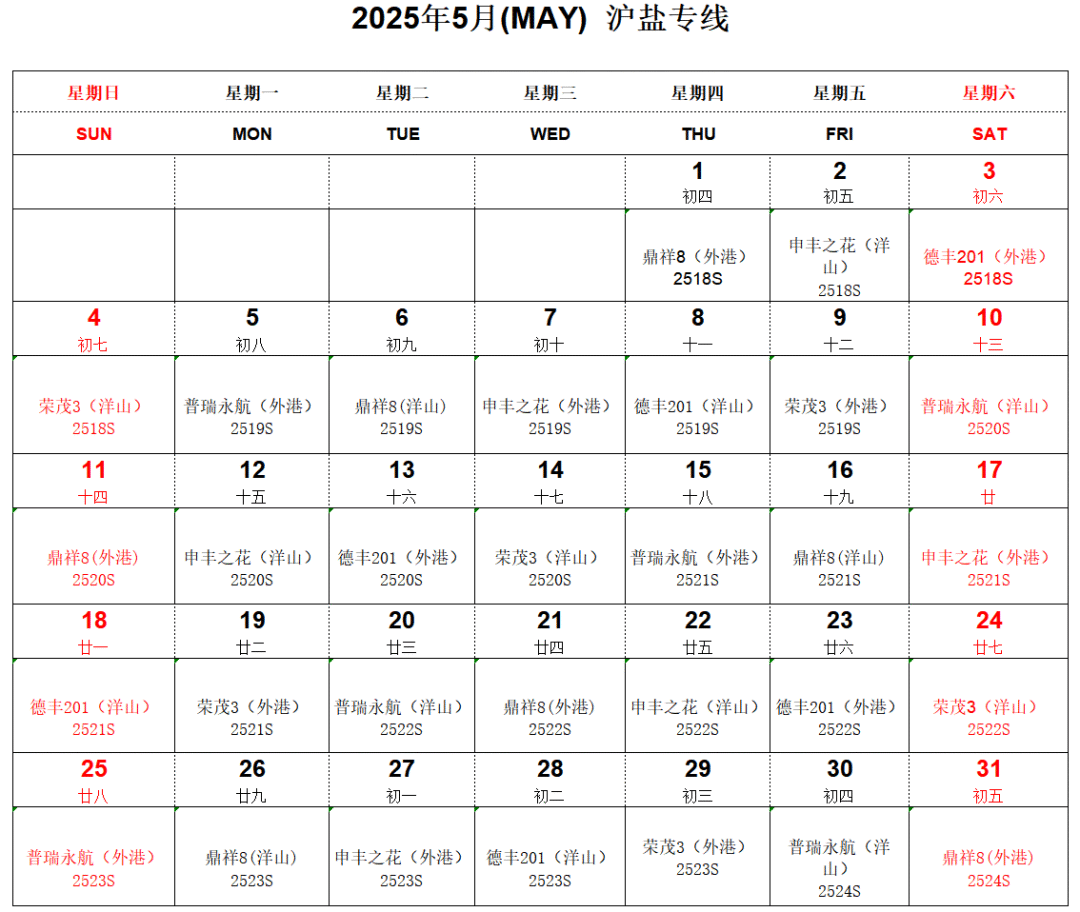 剛剛過(guò)去的五月,在實(shí)際可作業(yè)時(shí)間為21.5天的嚴(yán)峻挑戰(zhàn)下,江蘇滬豐集裝箱物流有限公司憑借卓越的高效運(yùn)營(yíng)實(shí)力,在航運(yùn)集團(tuán)的統(tǒng)籌協(xié)調(diào)下,5月完成27個(gè)航次運(yùn)輸任務(wù),其中“滬鹽專線”23個(gè)航次,“鹽連支線”4個(gè)航次,“滬鹽”專線的23航次也是自滬豐公司成立以來(lái)的歷史新高,真正意義實(shí)現(xiàn)天天班服務(wù),優(yōu)質(zhì)高效的服務(wù)獲得了客戶的一致好評(píng),這充分彰顯了滬豐公司在特殊工況時(shí)所具備的強(qiáng)大應(yīng)急響應(yīng)能力以及出色的航線資源統(tǒng)籌優(yōu)勢(shì)。