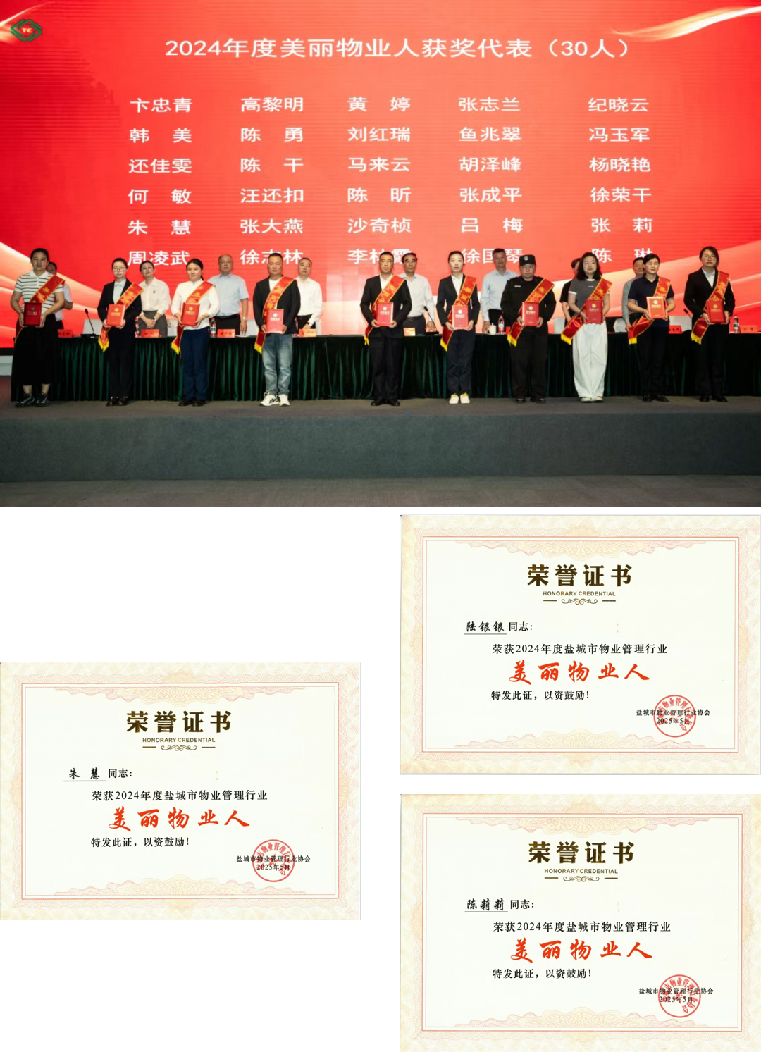 近年來,鹽城港物業(yè)公司按照集團“提質增效年”工作要求,苦練內功,外拓市場。始終錨定品質核心,秉承客戶至上理念,積極創(chuàng)優(yōu)品質管理,打造品牌核心競爭力;始終聚焦業(yè)務拓展,緊扣年度目標任務,在穩(wěn)固基礎業(yè)務上,持續(xù)深耕創(chuàng)收領域;始終筑牢人才基石,堅持人才隊伍建設,朱慧、陳莉莉、陸銀銀三位同志憑借在各自崗位上的突出貢獻和敬業(yè)精神,榮獲“2024年度鹽城市物業(yè)管理行業(yè)美麗物業(yè)人”榮譽稱號。
