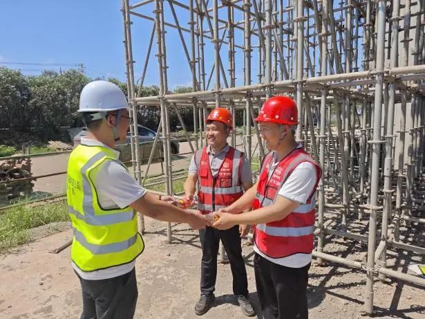 隨著夏季高溫、強降雨、臺風等極端天氣的接踵而至,安全生產(chǎn)面臨嚴峻“烤”驗。為切實保障一線作業(yè)人員的身體健康與生命安全,全力沖刺年度安全生產(chǎn)目標,港灣項目管理咨詢公司安環(huán)部開展了夏季“三送”(送清涼、送提醒、送教育)專項活動,將關懷與保障送到項目一線。