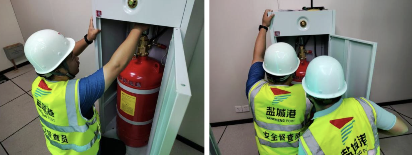 本次檢查深度融合“人防+技防”雙重手段,檢查小組運用紅外掃描儀、壓力傳感器檢測儀等先進(jìn)設(shè)備,對滅火器、消防栓、煙霧報警器等關(guān)鍵設(shè)施進(jìn)行了系統(tǒng)性檢測。在碼頭現(xiàn)場,檢查組重點查驗了門機(jī)、微機(jī)房柜及相關(guān)電氣設(shè)備的自動滅火系統(tǒng),通過模擬火災(zāi)信號全面測試系統(tǒng)響應(yīng)速度,確?;鹎榘l(fā)生時能夠迅速響應(yīng)。在物流園區(qū),針對倉庫電氣線路和防爆設(shè)備開展了地毯式排查,借助熱成像測溫技術(shù)精準(zhǔn)識別潛在過熱風(fēng)險,堅決杜絕設(shè)備“帶病運行”。