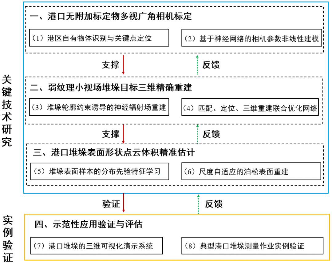 近日,集團科技創(chuàng)新課題《基于港區(qū)視頻的港口堆垛智能化測量作業(yè)系統(tǒng)》成功斬獲雙項核心知識產(chǎn)權(quán)——《一種基于視頻監(jiān)控的港口堆垛測量系統(tǒng)及測量方法》發(fā)明專利與《散貨堆垛三維重建可視化系統(tǒng)》計算機軟件著作權(quán),同時系統(tǒng)已在響水港區(qū)散雜貨堆場實現(xiàn)試點應(yīng)用落地,不僅驗證了技術(shù)的可行性與穩(wěn)定性,更標志著集團“從技術(shù)研發(fā)到成果轉(zhuǎn)化”的創(chuàng)新鏈路貫通,港口智能化升級邁出實質(zhì)性步伐。