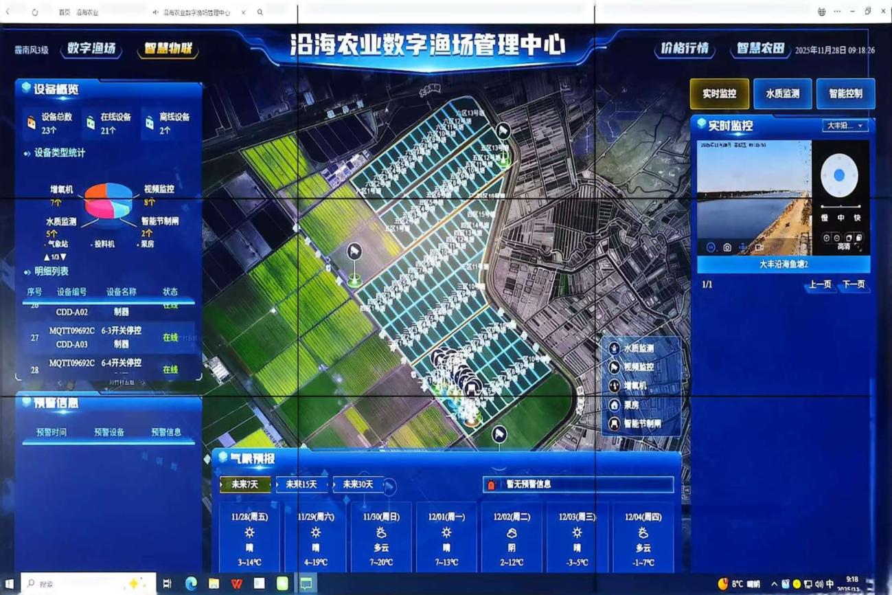 聚焦項目建設,全面提升設施條件。加快推進池塘標準化改造項目,累計完成約8萬畝池塘標準化改造,實現養(yǎng)殖尾水穩(wěn)定達標排放,推動水產養(yǎng)殖高質量可持續(xù)發(fā)展。持續(xù)推進“農業(yè)+新能源”項目,華豐69.5MW風電場項目并網發(fā)電;吉電200MW“漁光互補”項目啟動實施;簽約悅春、悅葦項目,裝機總量超580MW。以國家專項財政資金補助為契機,圓滿完成2800畝鹽堿耕地改良,成功實施1.3萬畝高標準農田項目,推動生產基礎設施提檔升級。