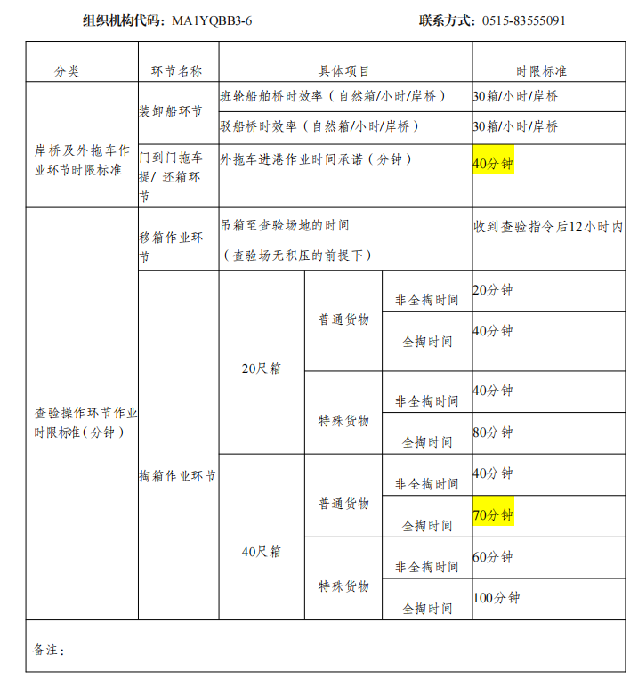 江蘇鹽城港上港國際港務(wù)有限公司作業(yè)時(shí)限標(biāo)準(zhǔn)