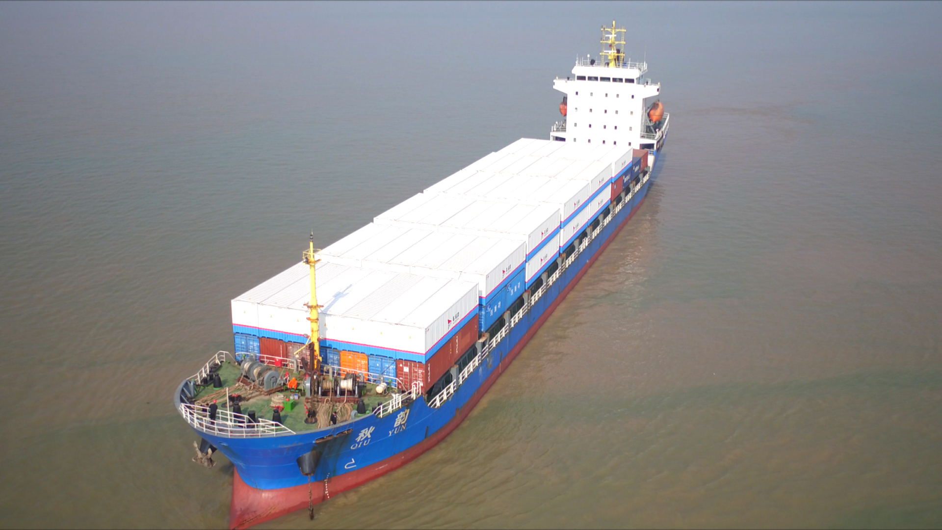 11月18日上午,“秋韻”輪搭載著100個(gè)鹽城港自備箱大柜緩緩靠泊鹽城港集裝箱碼頭,鹽城港集裝箱物流車輛整齊列隊(duì),共同歡迎“新成員”的加入。