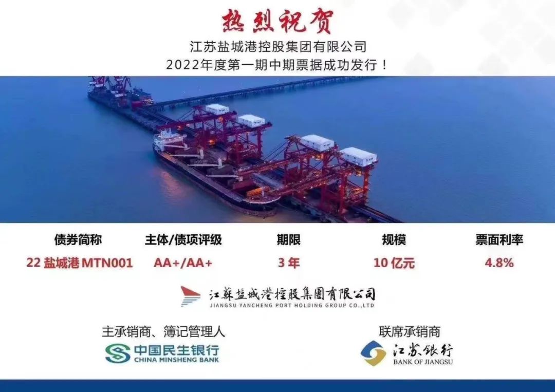 好消息!鹽城港集團(tuán)2022年度第一期中期票據(jù)成功發(fā)行