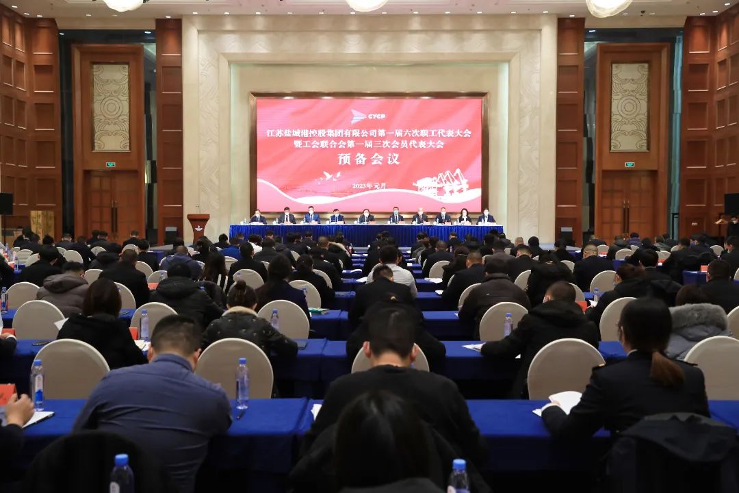 1月8日,江蘇鹽城港控股集團(tuán)有限公司第一屆六次職工代表大會暨工會聯(lián)合會第一屆三次會員代表大會舉行預(yù)備會議,集團(tuán)黨委書記、董事長周正雄出席會議并講話。集團(tuán)工會聯(lián)合會主席方海東主持會議,集團(tuán)領(lǐng)導(dǎo)班子全體成員,工會“兩會”代表等參加。