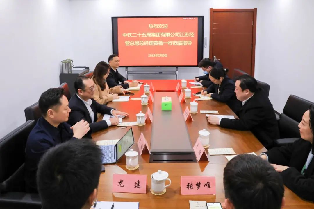 2月8日,中鐵二十五局集團(tuán)有限公司江蘇經(jīng)營(yíng)總部總經(jīng)理黃敏率隊(duì)拜訪我集團(tuán),就相關(guān)項(xiàng)目合作展開(kāi)交流。集團(tuán)黨委書(shū)記、董事長(zhǎng)周正雄接待黃敏一行。集團(tuán)副總經(jīng)理袁欣,集團(tuán)相關(guān)部門(mén)負(fù)責(zé)同志等參加。