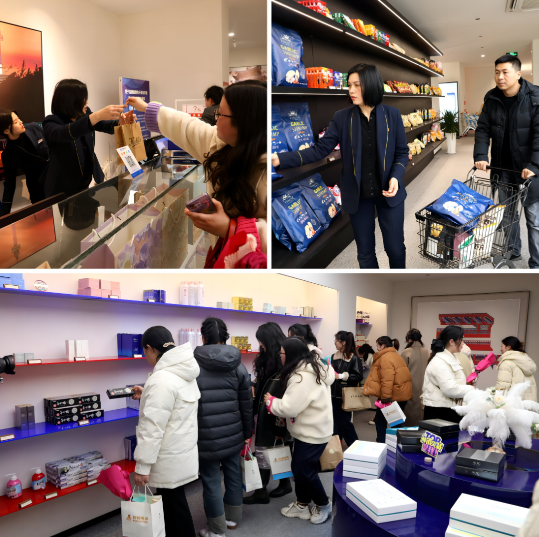 除了美食的誘惑,園區(qū)內(nèi)的各個特色展銷館也呈現(xiàn)出一派熱鬧景象。結(jié)合女性消費習慣,各展銷館精心策劃了婦女節(jié)禮包和促銷活動,琳瑯滿目的高檔化妝品、法國紅酒、香水等商品,讓游客們流連忘返。一位滿載而歸的顧客興奮地分享道:“這里的商品真的是物超所值,無論是自用還是送人,都是好選擇!”