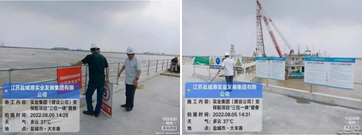 圖為安保船現(xiàn)場(chǎng)安全整改懸掛安全警示標(biāo)牌