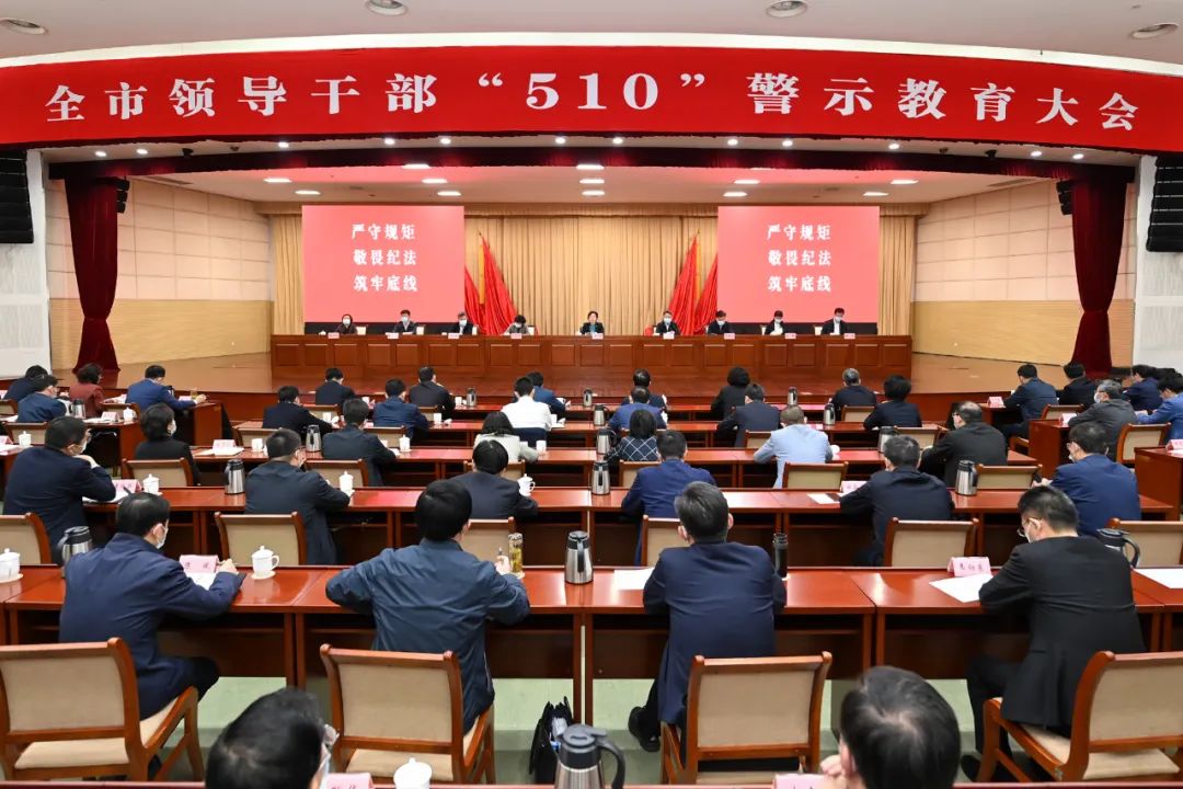 5月10日,市委召開全市領(lǐng)導(dǎo)干部“510”警示教育大會(huì),堅(jiān)持以習(xí)近平新時(shí)代中國特色社會(huì)主義思想為指導(dǎo),深入貫徹落實(shí)全面從嚴(yán)治黨要求,以案釋德、以案釋紀(jì)、以案釋法,進(jìn)一步增強(qiáng)黨員干部、國家公職人員廉潔自律意識(shí),全力營造風(fēng)清氣正、干事創(chuàng)業(yè)的良好政治生態(tài),為勇當(dāng)沿海地區(qū)高質(zhì)量發(fā)展排頭兵、奮力譜寫“強(qiáng)富美高”新鹽城現(xiàn)代化建設(shè)新篇章提供堅(jiān)強(qiáng)保障。市委書記徐纓出席并講話,市委副書記、市長周斌主持,市政協(xié)主席陳紅紅、市委副書記羊維達(dá)出席。