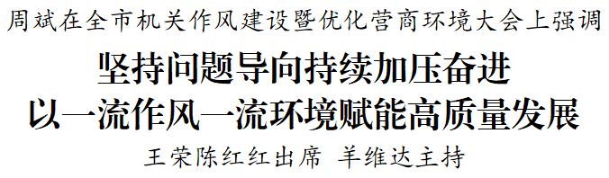 周斌指出,黨的十八大以來,以習近平同志為核心的黨中央高度重視干部作風和營商環(huán)境建設,反復強調作風建設永遠在路上,只有進行時沒有完成時;深刻指出“好的營商環(huán)境就像陽光、水和空氣,須臾不能缺少”。全市上下要切實增強責任感、緊迫感,深刻認識轉作風、優(yōu)環(huán)境是扛起新使命的關鍵之舉,是競逐新賽道的必由之路,是展現(xiàn)新作為的應有之義,必須把機關作風建設和優(yōu)化營商環(huán)境擺在更加突出位置,對照“軍令狀”,落實“施工圖”,畫好“工筆畫”,全力攻堅突破、爭先進位,嚴格督查考核,以永遠在路上的恒心,一步一個腳印矢志鍛造一流作風、營造一流環(huán)境、創(chuàng)造一流業(yè)績。