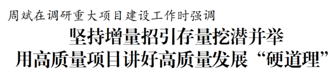 周斌在調(diào)研中強(qiáng)調(diào),重大項(xiàng)目是經(jīng)濟(jì)社會高質(zhì)量發(fā)展的“加速器”和“壓艙石”。今年各項(xiàng)工作已經(jīng)進(jìn)入下半場,各地各部門要增強(qiáng)時不我待的緊迫感,堅(jiān)持一切圍著項(xiàng)目轉(zhuǎn)、一切盯著項(xiàng)目干,推動重大項(xiàng)目建設(shè)跑出“加速度”,用高質(zhì)量項(xiàng)目講好高質(zhì)量發(fā)展“硬道理”。要堅(jiān)持增量招引和存量挖潛并舉,既注重招引新項(xiàng)目、好項(xiàng)目,又鼓勵引導(dǎo)現(xiàn)有企業(yè)開展“智改數(shù)轉(zhuǎn)網(wǎng)聯(lián)”、技改擴(kuò)能項(xiàng)目投資。要積極推動制造業(yè)數(shù)字化轉(zhuǎn)型,促進(jìn)專精特新企業(yè)蓬勃發(fā)展,培育壯大智能產(chǎn)業(yè),加快構(gòu)建現(xiàn)代化產(chǎn)業(yè)體系,為推進(jìn)中國式現(xiàn)代化鹽城新實(shí)踐提供堅(jiān)實(shí)支撐。