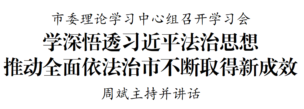 會前,市委中心組成員認(rèn)真學(xué)習(xí)習(xí)近平法治思想,聯(lián)系工作實(shí)際撰寫心得體會。會上,周斌領(lǐng)學(xué)有關(guān)內(nèi)容,部分同志交流發(fā)言。