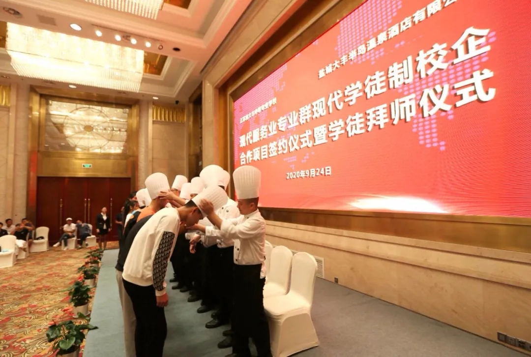 據(jù)悉,大豐中等專業(yè)學校和大豐港集團旗下半島溫泉酒店簽訂協(xié)議,雙方將共同探索建立校企“聯(lián)合招生、聯(lián)合培養(yǎng)、定向就業(yè)”的人才培養(yǎng)長效機制,為創(chuàng)新人才培養(yǎng)方式提供了一個嶄新平臺。通過合作,學校和企業(yè)進行優(yōu)勢互補,實現(xiàn)資源共享?;顒又?,學校、酒店、家長、學生四方代表簽訂了現(xiàn)代學徒制工學交替跟崗實習協(xié)議,并舉行首批學徒制拜師儀式,23名學生順利拜師跟崗。