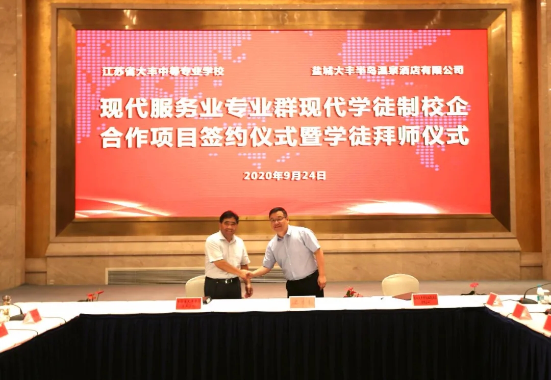據(jù)悉,大豐中等專業(yè)學(xué)校和大豐港集團(tuán)旗下半島溫泉酒店簽訂協(xié)議,雙方將共同探索建立校企“聯(lián)合招生、聯(lián)合培養(yǎng)、定向就業(yè)”的人才培養(yǎng)長(zhǎng)效機(jī)制,為創(chuàng)新人才培養(yǎng)方式提供了一個(gè)嶄新平臺(tái)。通過合作,學(xué)校和企業(yè)進(jìn)行優(yōu)勢(shì)互補(bǔ),實(shí)現(xiàn)資源共享?;顒?dòng)中,學(xué)校、酒店、家長(zhǎng)、學(xué)生四方代表簽訂了現(xiàn)代學(xué)徒制工學(xué)交替跟崗實(shí)習(xí)協(xié)議,并舉行首批學(xué)徒制拜師儀式,23名學(xué)生順利拜師跟崗。