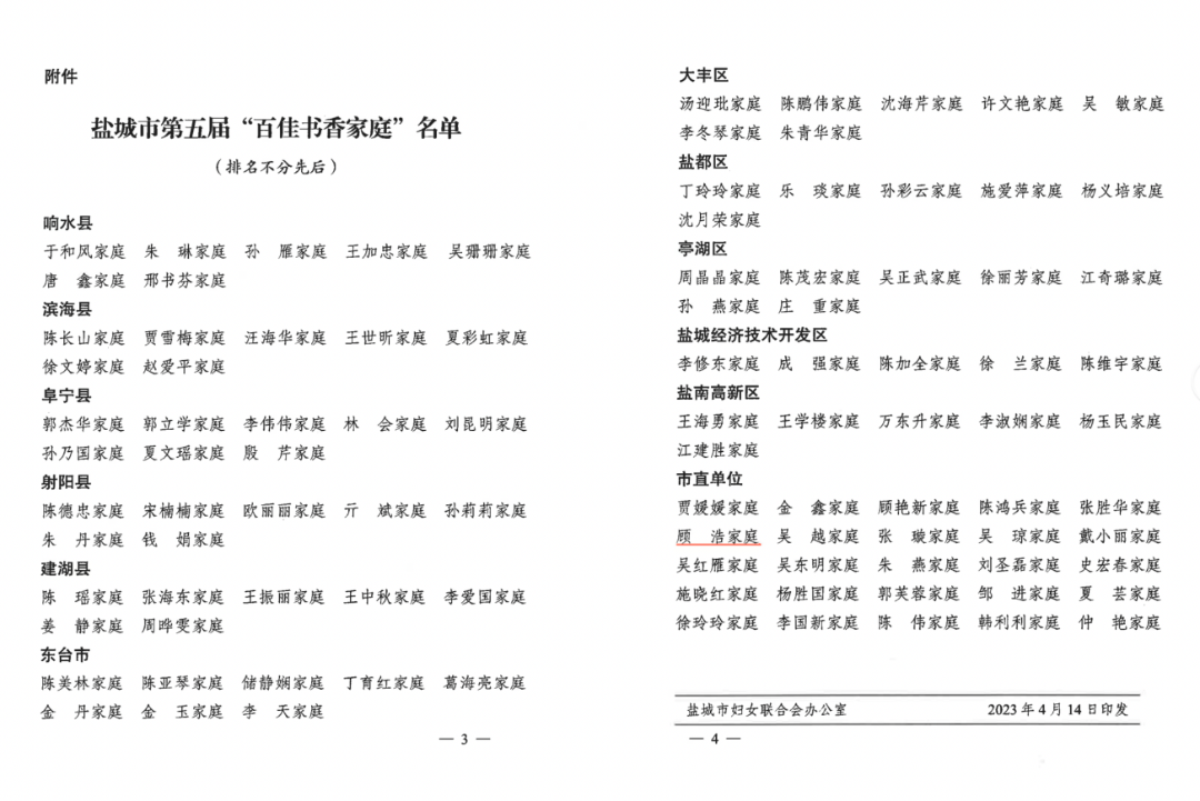 近日,從鹽城市婦女聯(lián)合會傳來好消息,在市第五屆“百佳書香家庭”評選活動中,集團下屬公司大豐港集團成品油公司職工顧浩家庭榮獲鹽城市“百佳書香家庭”稱號。